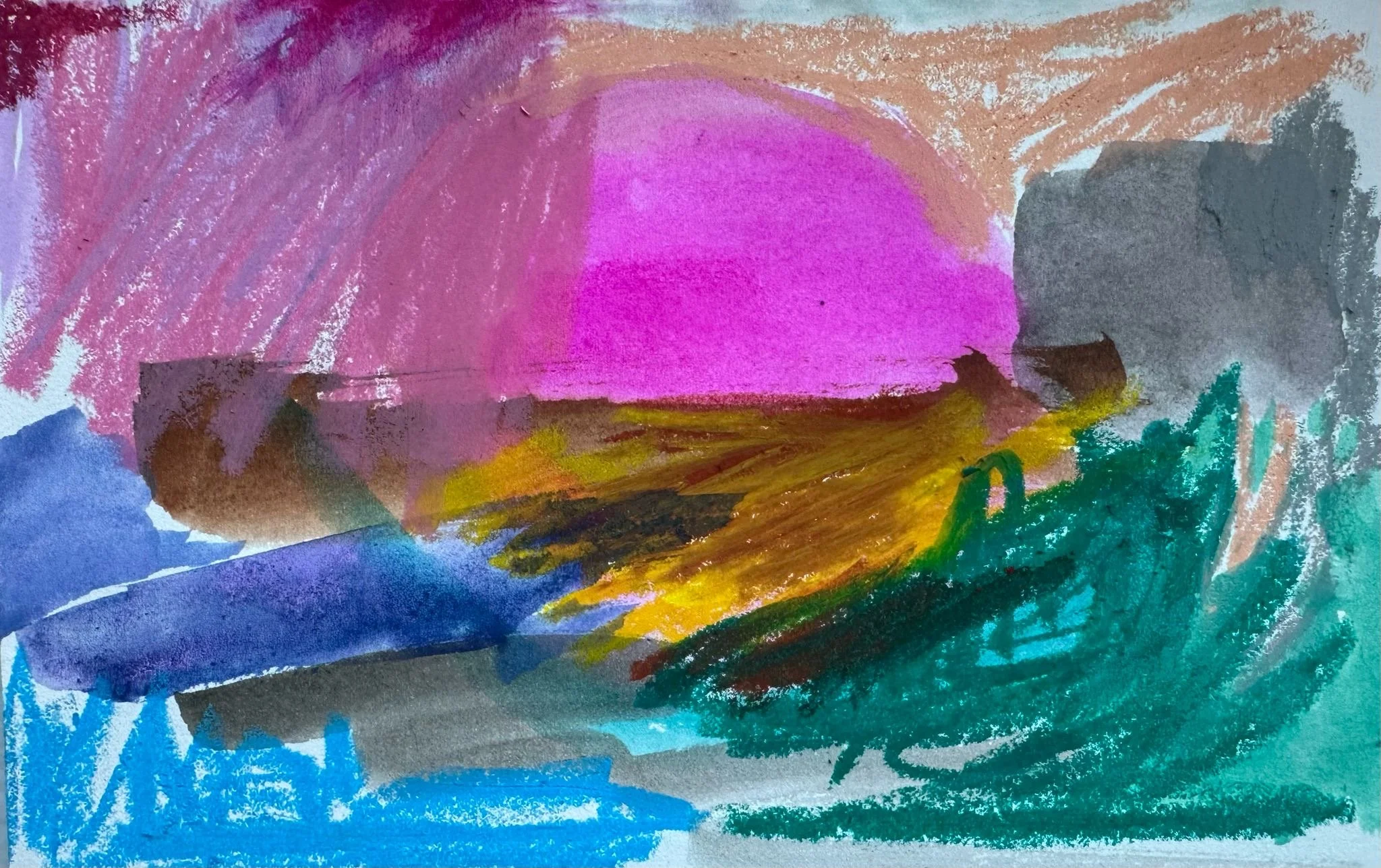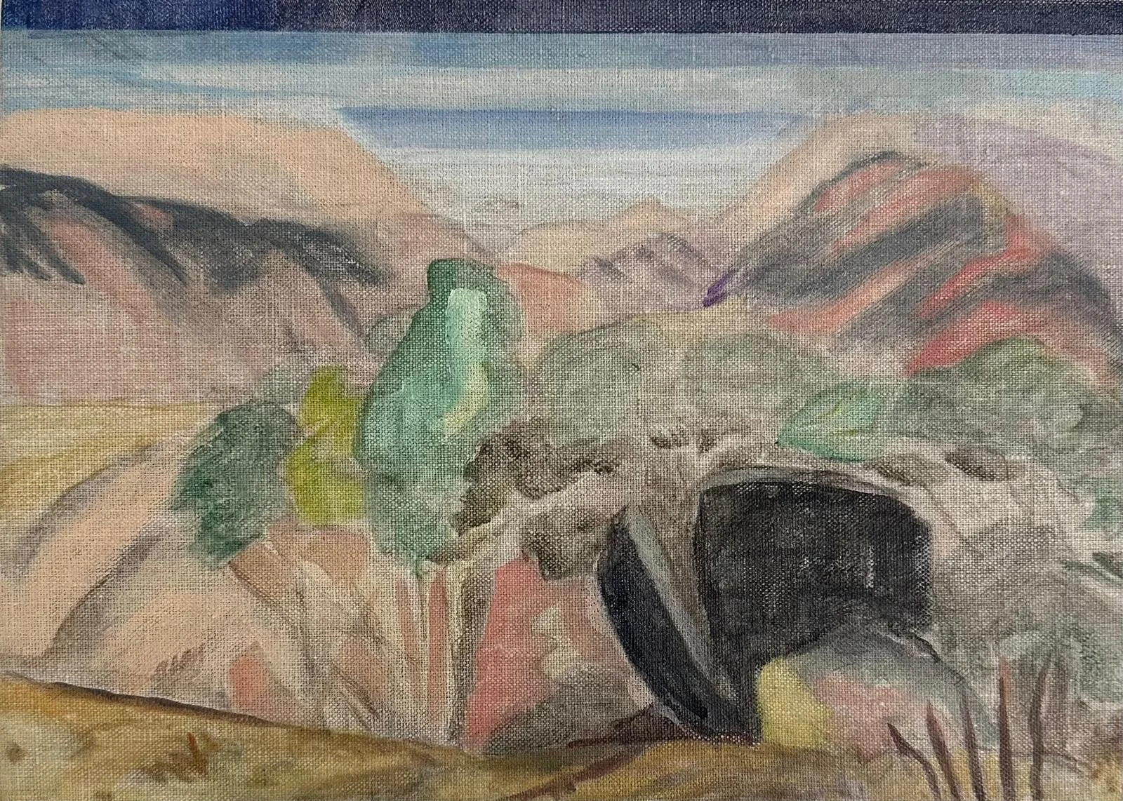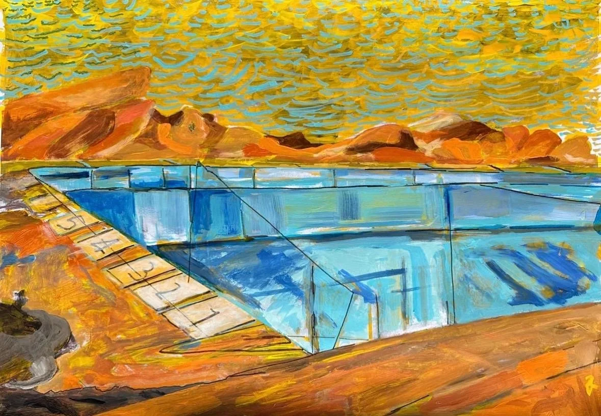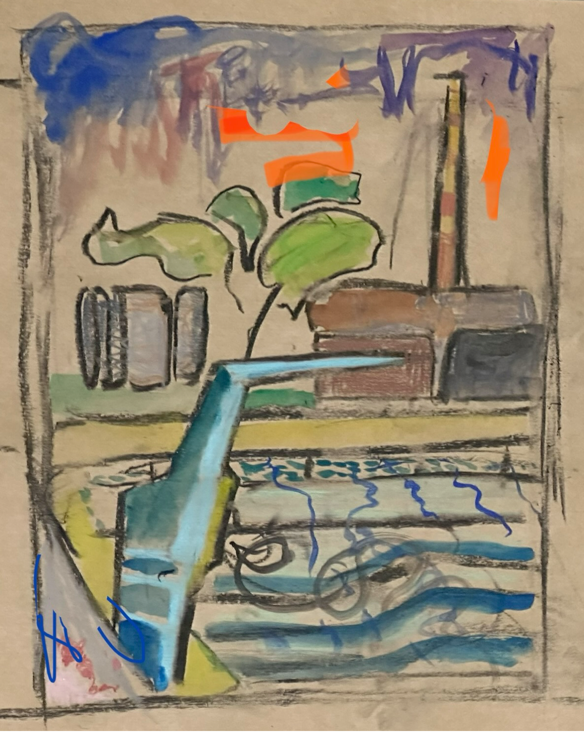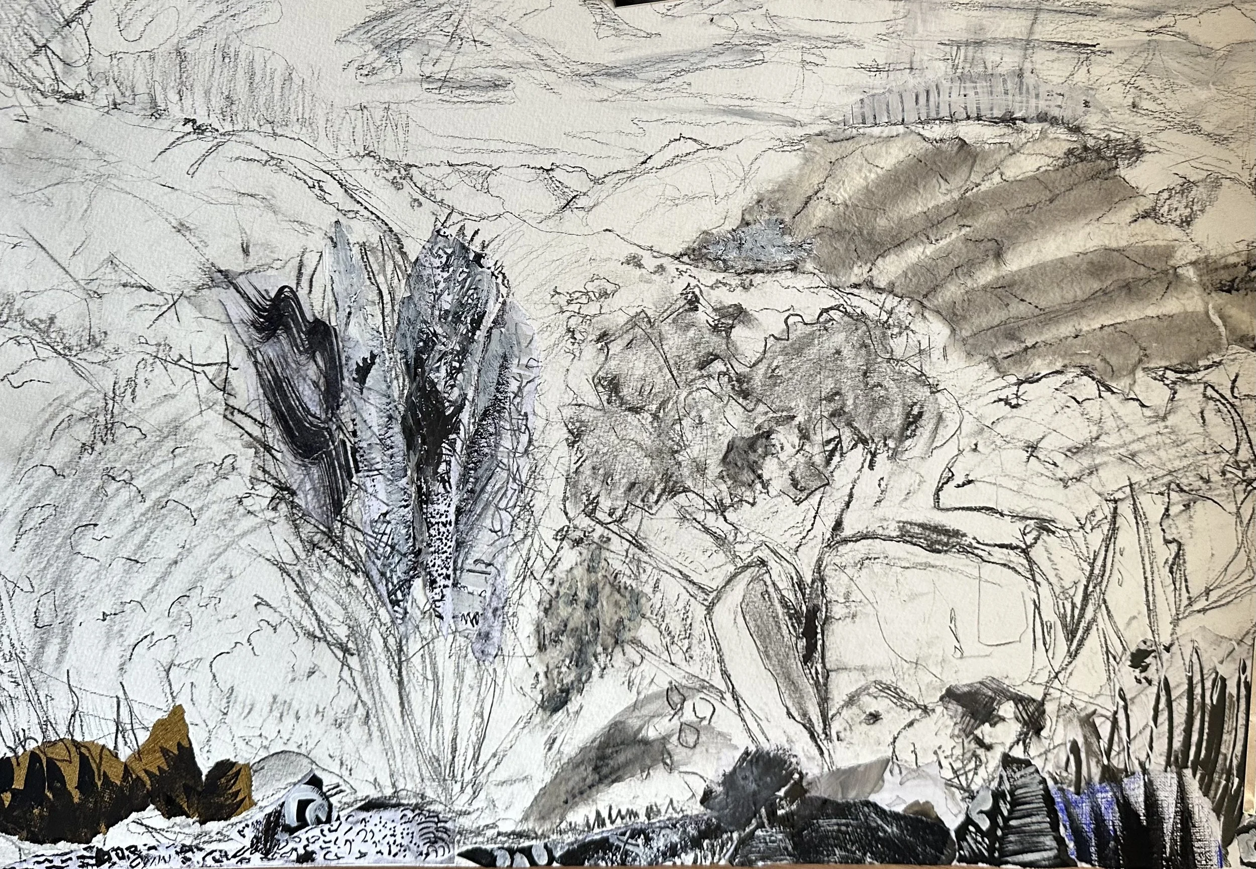 A month long residency in March 2024, Portland culminated in several new works with a continued focus on the pool and also a large chimney as the boundary between worlds. Williams was also able to continue her abstractions of Split Rock in Hill End, read, meditate, walk and draw the Squat Cottage and her surroundings with no interruptions, allowing her to focus on her own experience and expression without a sense of audience.