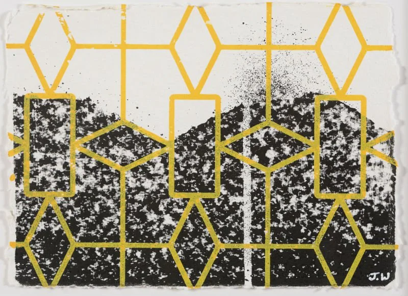 As diverse as her travels and connections, Julie Williams’ recent work is process focussed and opens a discussion about magical realism, abstraction and a desire to explore different mediums. Her latest artworks, out of her studio collective in Freshwater, Sydney, use reflective light, geometric form and the syncopation of a high key palette to play with abstraction of the landscape and placement of elements to broach the familiar theme of the tension between worlds.